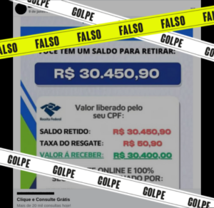 É golpe post de saque de R$ 30 mil atribuído à Receita Federal