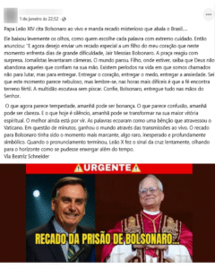 Publicado originalmente em Aos Fatos. Acesse na íntegra aqui. Não é verdade que o papa Leão 14 citou Jair Bolsonaro (PL) em discurso recente e pediu que ele não