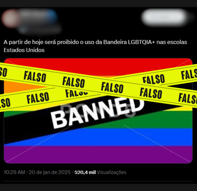 Não houve, entre as medidas executivas adotadas pelo presidente Donald Trump desde sua posse, na segunda-feira (20), banimento da bandeira do orgulho LGBTQIA+ nas escolas dos Estados Unidos. Publicações nas redes também alegam que a bandeira do orgulho foi proibida em todos os prédios públicos do país. Embora o governo Trump tenha anunciado o fim das políticas de diversidade, equidade e inclusão nos órgãos federais, não há menção à palavra “bandeira” no comunicado governamental.