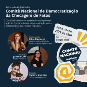 O Comitê Nacional de Democratização da Checagem de Fatos, uma iniciativa coordenada pela AletheiaFact.org, realiza hoje, 27/01, um encontro aberto de retomada, que também funciona