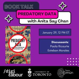 DigiLabour e Tierra Común anunciam conferencia com Anita Say Chan (University of Illinois, Urbana-Champaign) sobre o novo livro Predatory Data: Eugenics in Big Tech and