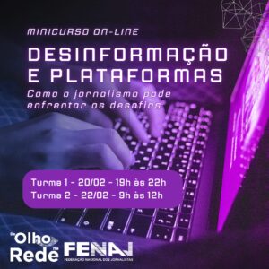 Participe do minicurso “Desinformação e Plataformas – Como o Jornalismo Pode Enfrentar os Desafios”, promovido pela FENAJ e pelo projeto De Olho na Rede. ????