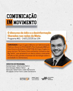 O 1º Programa Comunicação em Movimento de 2025 que vai ao ar no dia 14 de janeiro, conversa com o pesquisador Ergon Cugler ???? @ergon.br