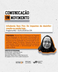 Publicado originalmente em instagram de Emerge/UFF. Para acessar, clique aqui. O Programa Comunicação em Movimento #62 ???? do dia 31/01/25 (???? 19h) tem como tema ????️”Infodemia Sem