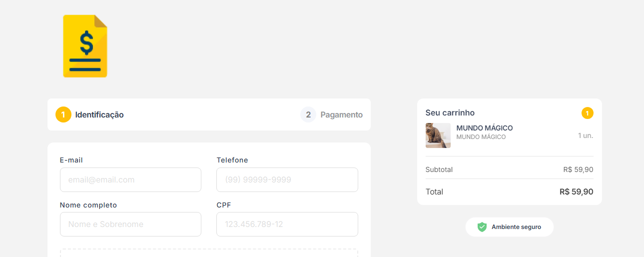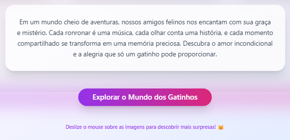 No site existe um botão que convida a “Explorar o mundo dos gatinhos”. Ao clicar, o usuário é redirecionado para uma página de pagamento. Não é especificado o que está sendo vendido, mas aparece o valor de R$59,90 a ser pago. Mesmo assim, o site solicita o nome completo, CPF, telefone, e-mail e indica que o pagamento seja feito por Pix.