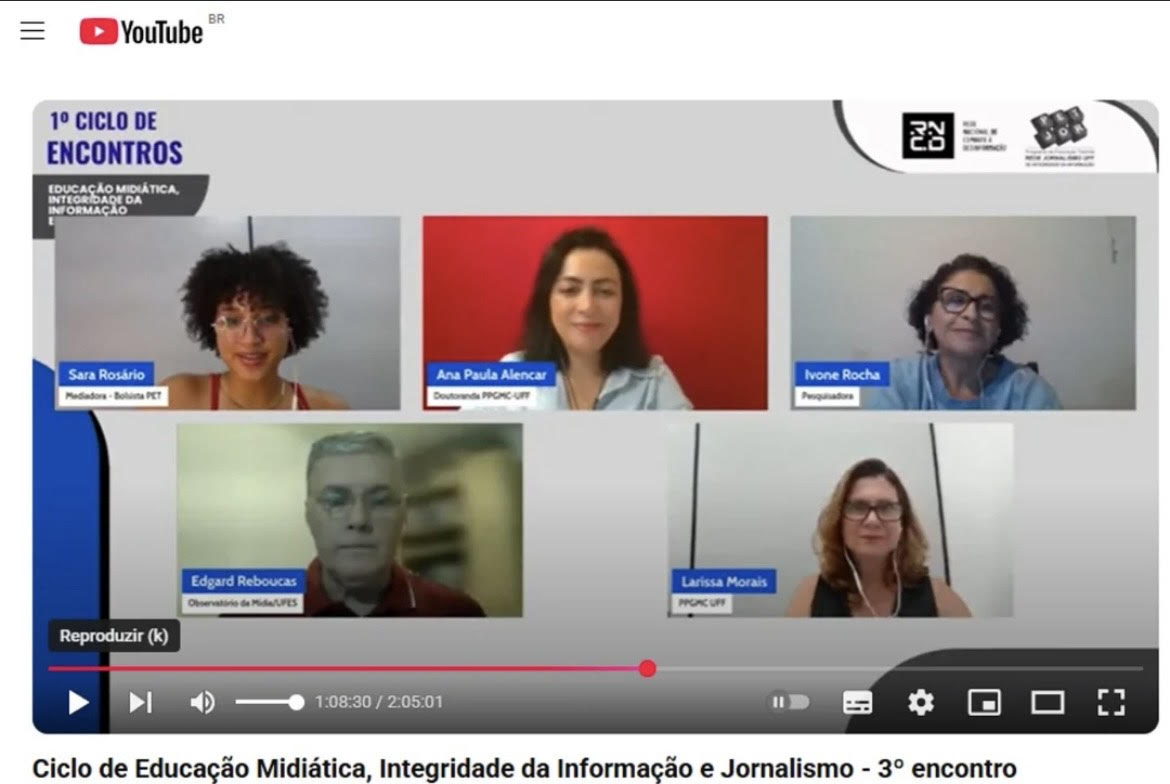 Já está disponível no YouTube o terceiro encontro do Ciclo de Encontros Educação Midiática, Integridade da Informação e Jornalismo, promovido pela Universidade Federal Fluminense (UFF) no âmbito do Programa Educação Tutorial (PET) de Jornalismo.