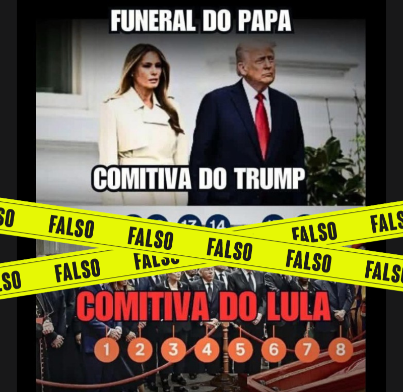 Circula pelas redes sociais a alegação de que a comitiva norte-americana que foi ao funeral do Papa Francisco era composta apenas pelo presidente Donald Trump e pela primeira-dama Melania. Publicações comparam a comitiva estadunidense com a brasileira para evidenciar suposto excesso por parte do governo federal. É falso.