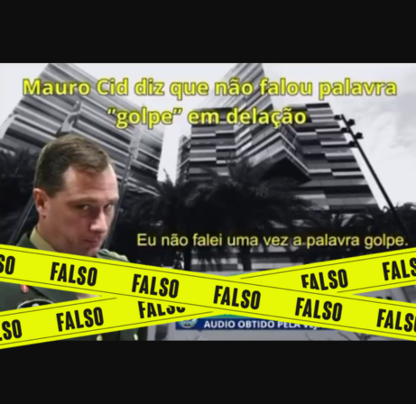 Circula nas redes sociais um áudio em que o tenente-coronel Mauro Cid, ex-ajudante de ordens do ex-presidente Jair Bolsonaro (PL), afirma que, na delação feita ao Supremo Tribunal Federal (STF), não utilizou a palavra “golpe”. É falso.