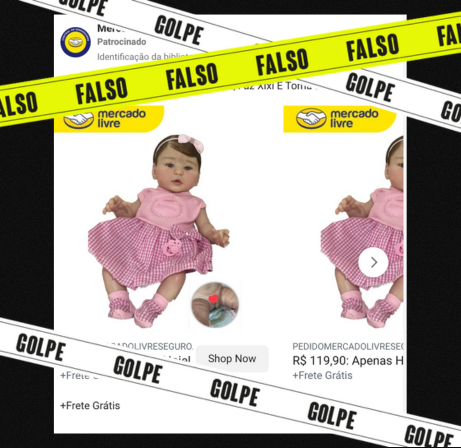Circula nas redes sociais um post anunciando a venda de bebês reborn — bonecas hiper-realistas que imitam recém-nascidos — pelo Mercado Livre ao preço de R$ 99,90. Trata-se de um golpe.