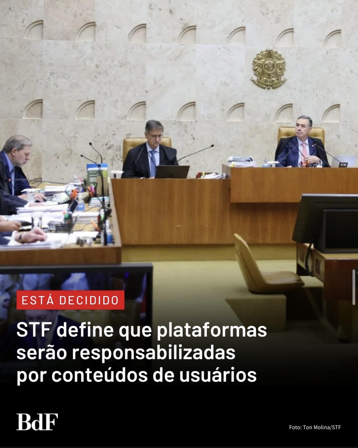 Leia a matéria completa da Brasil de Fato neste link: https://www.brasildefato.com.br/2025/06/26/esta-decidido-stf-define-que-plataformas-devem-ser-responsabilizadas-por-conteudos-de-usuarios