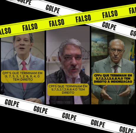 Circulam no Facebook vídeos com o vice-presidente Geraldo Alckmin (PSB), com o ministro da Fazenda, Fernando Haddad, e com o jornalista William Bonner alegando que todos os brasileiros têm direito a uma indenização a ser paga pela Caixa Econômica Federal. Para ter acesso, é preciso clicar em um botão abaixo do vídeo para ser redirecionado para o site oficial. Textos que acompanham o post alegam que pode ser sacado até R$ 10 mil. É falso. Trata-se de um golpe.