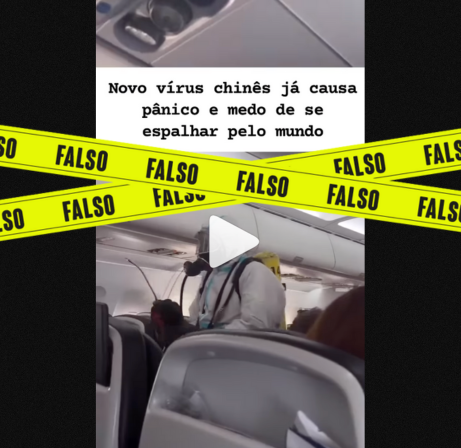 Circula nas redes sociais um vídeo que mostra imagens internas de um avião em que pessoas com máscaras passam pelo corredor desinfetando a aeronave. Segundo a legenda, isso ocorreu por causa do surto na China de casos do vírus metapneumovírus humano (hMPV). É falso.