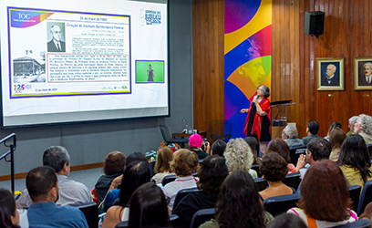O último dia do Simpósio IOC Jubileu 125 anos (23/5) foi marcado por uma imersão na trajetória institucional. A programação teve início com a palestra da diretora do Instituto Oswaldo Cruz (IOC/Fiocruz), Tania Cremonini de Araujo-Jorge, intitulada ‘125 Anos do IOC: de onde viemos e onde estamos’. Em seguida, ocorreram sessões de homenagens, destaques, informes, lançamentos relacionados ao Jubileu e, para encerrar, uma apresentação musical do projeto TriloGils.