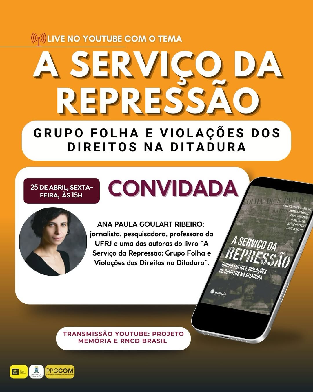 ????????O Programa de Pós-Graduação em Comunicação da UFPI @ppgcom , o Projeto Memória do Jornalismo @memoriadojornalismopi e a Rede Nacional de Combate à Desinformação @rncdbrasil convidam para a Live sobre o livro A SERVIÇO DA REPRESSÃO: Grupo Folha e violações dos direitos na Ditadura.