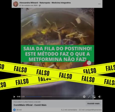 Publicação nas redes sociais traz um vídeo que garante fazer você sair da fila do postinho a partir de um método que promete ser superior à metformina – medicamento amplamente utilizado no tratamento do diabetes tipo 2, doença crônica caracterizada pela resistência à insulina e pela produção insuficiente de insulina pelo pâncreas.