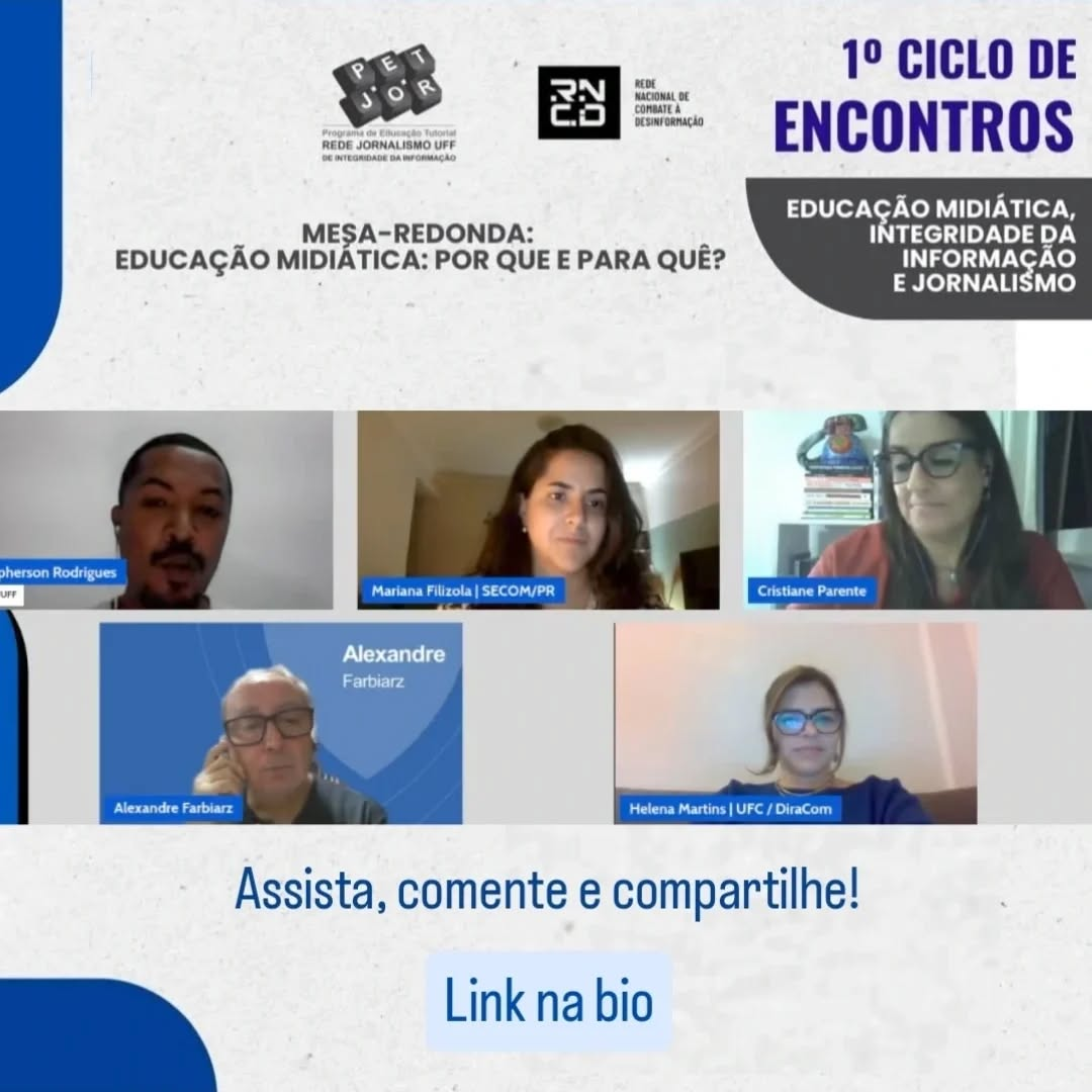 O canal do PET Jornalismo da Universidade Federal Fluminense (UFF) no YouTube já disponibiliza os dois primeiros encontros do Ciclo de Encontros Educação Midiática, Integridade da Informação e Jornalismo. Os vídeos podem ser acessados gratuitamente pela plataforma (link na bio do perfil oficial).