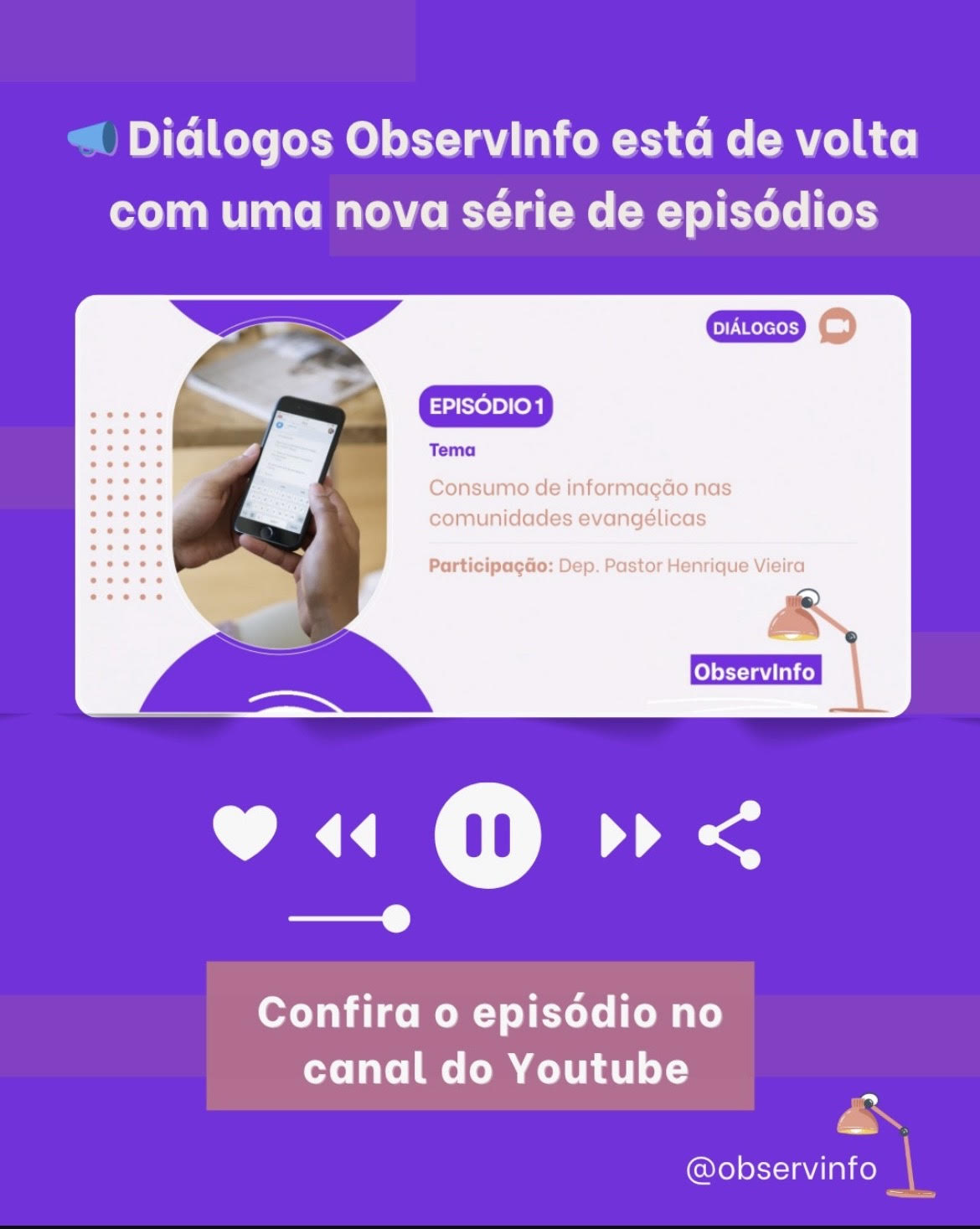 Nesta terça-feira (15) estreou a nova temporada do Diálogos do ObservInfo, um programa de entrevistas voltado à alfabetização midiática e informacional e ao enfrentamento à desinformação, realizado pelo projeto de pesquisa e extensão da Universidade de Brasília (UnB). Neste primeiro episódio da temporada, o programa receberá o deputado e pastor Henrique Vieira (PSOL-RJ) para uma conversa sobre religião, práticas informacionais e os desafios da desinformação, a fim de refletir sobre o papel das comunidades evangélicas na construção e circulação de informações.