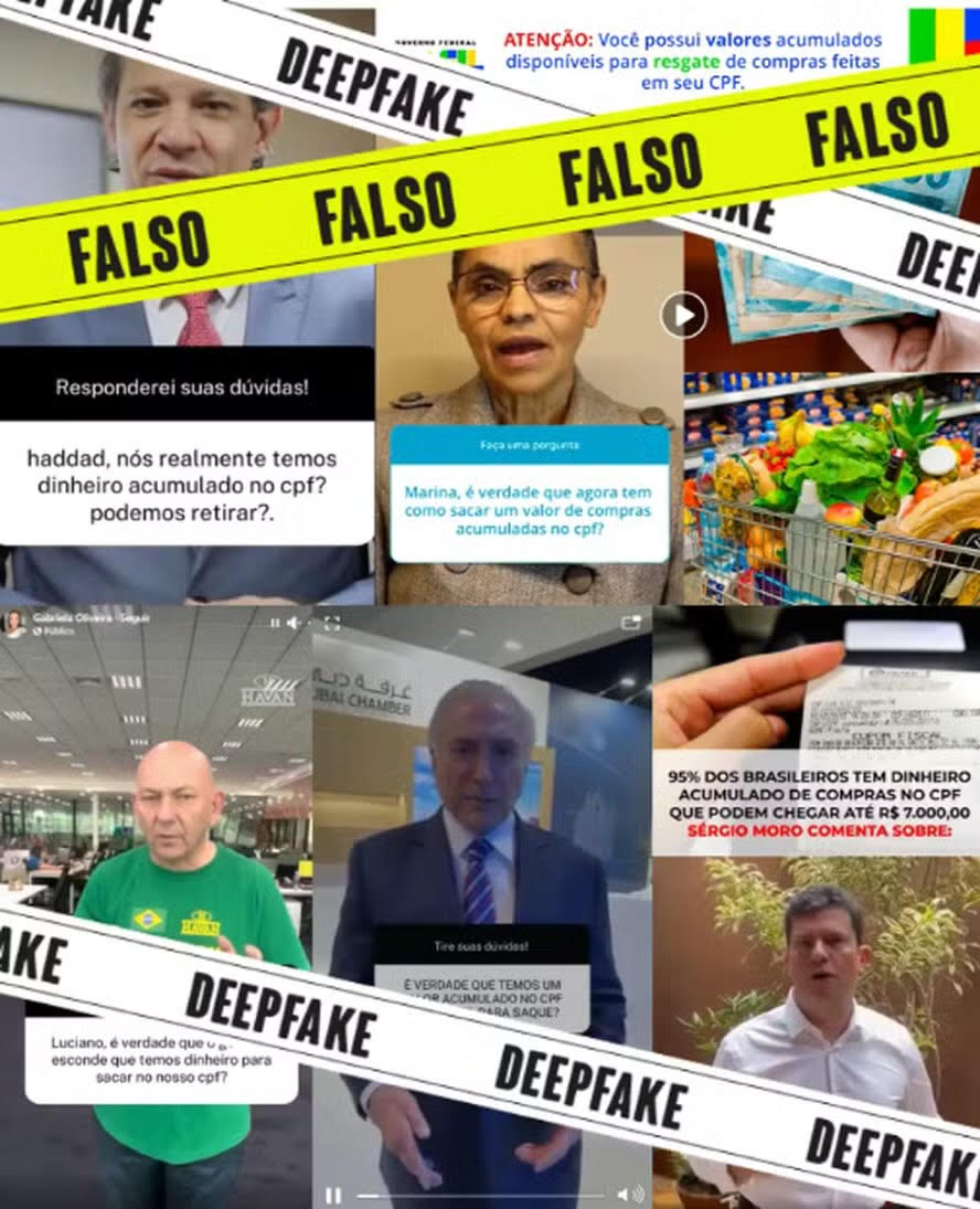 Uma pesquisa feita pela Agência Lupa apontou que a inteligência artificial tem sido uma ferramenta cada vez mais adotada por criminosos virtuais para induzir usuários das redes sociais a caírem em golpes diversos. Uma das principais estratégias é o uso de deepfakes de políticos, empresários e jornalistas.