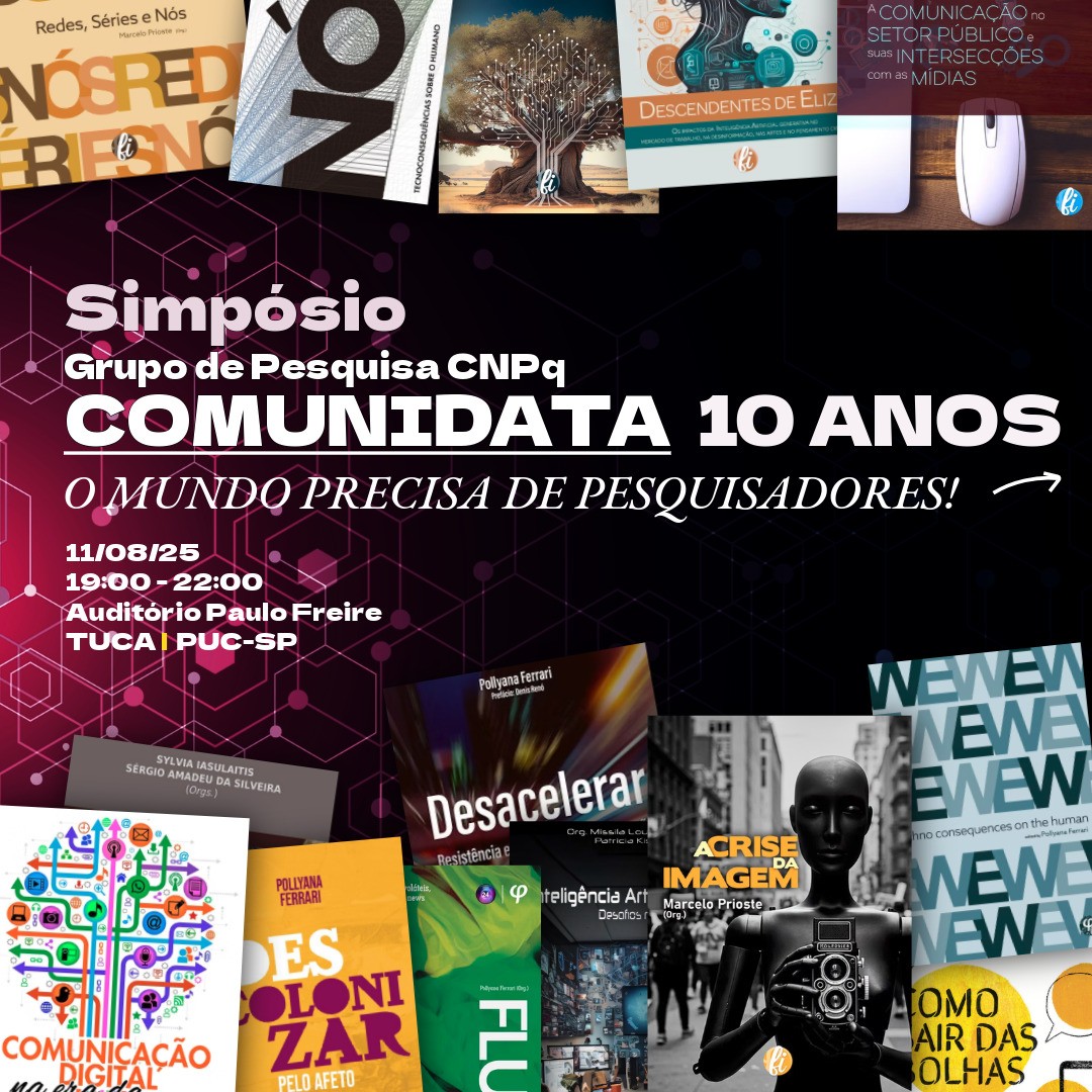Com estreia marcada para o dia 11 de agosto, às 19h, no TUCA (Teatro da Universidade Católica de São Paulo), auditório Paulo Freire, o filme Comunidata 10 anos é dirigido por Pollyana Ferrari — livre-docente e pesquisadora da PUC-SP e Felipe F. Neves, pós-doutorando no programa TIDD (PUC-SP), documentarista e professor de audiovisual. A produção, de 45 minutos, é resultado de um processo colaborativo que aborda temas urgentes como desinformação, identidade digital, vigilância algorítmica e os impactos sociais das redes.