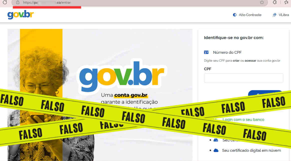 Site imita página do governo e pede CPF de usuários para aplicar golpe. Imagem: Reprodução.