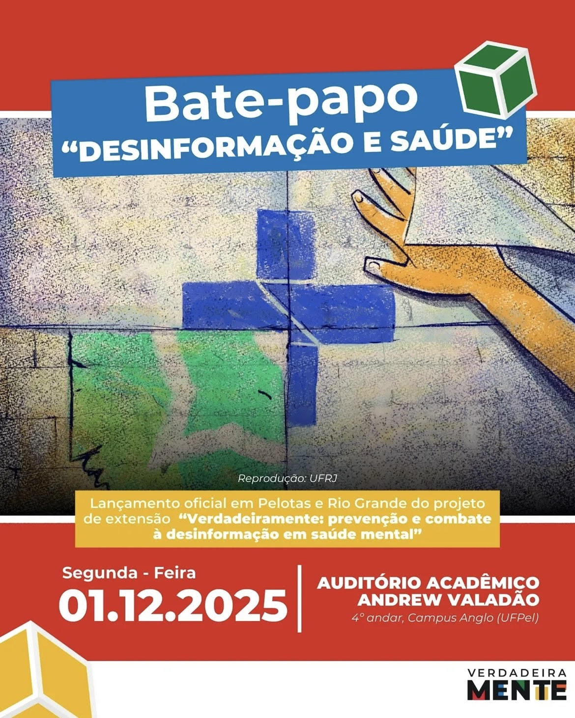 O evento é gratuito e acontecerá no Auditório Acadêmico Andrew Valadão, no campus Anglo da UFPel, com início às 17h. Será aberto a professores, pesquisadores, profissionais e estudantes das áreas da Saúde e da Comunicação, além de interessados no tema. Estudantes inscritos poderão receber certificados com horas de atividades complementares, mediante assinatura da lista de presença no evento. A programação inclui apresentação do projeto, falas dos participantes e um bate-papo sobre desinformação e saúde, com as professoras Raquel Recuero (UFPel e UFRGS) e Luciana Carvalho (UFSM e Unipampa). Recuero é uma das principais referências na pesquisa sobre desinformação, além de coordenadora do Laboratório de Pesquisa em Mídia, Discurso e Análise de Redes Sociais (MIDIARS), e Carvalho é coordenadora do projeto VerdadeiraMente e líder do Grupo de Pesquisa Desinfomídia (UFSM/CNPq).