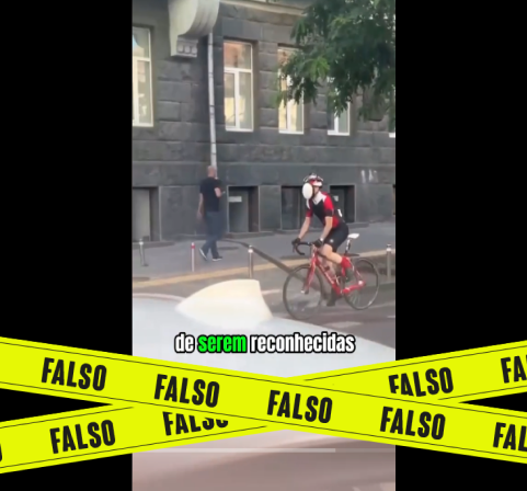 “Dá só uma olhada na nova tendência que está virando febre nos países de fora e logo vai chegar aqui no Brasil também. (…) A moda agora é usar máscara que esconde todo o rosto e esses flagras foram feitos na Ucrânia e supostamente essas pessoas estão usando para evitarem serem reconhecidas por câmeras que usam inteligência artificial”